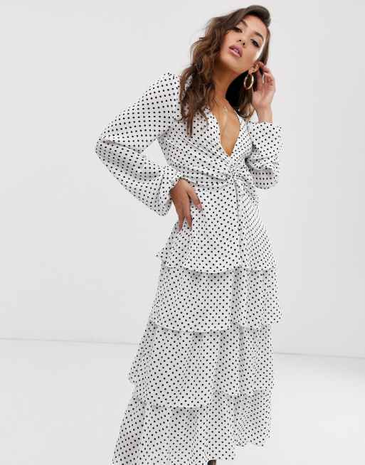 Hvid polkaprikket midikjole med dyb udskæring fra Na-kd