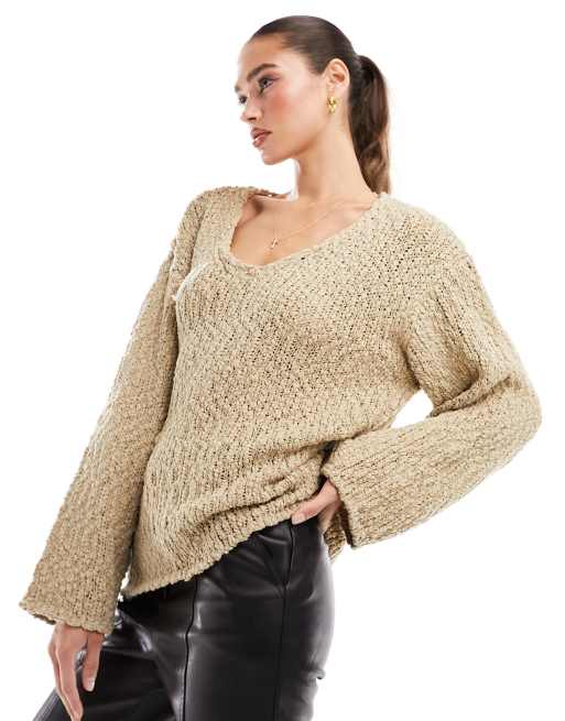 NA-KD - Beige striktrøje med struktur