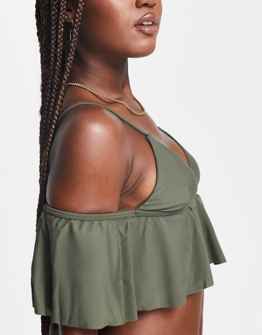 NA-KD - Bikinisæt med offshoulder-snit i mørk kakigrøn
