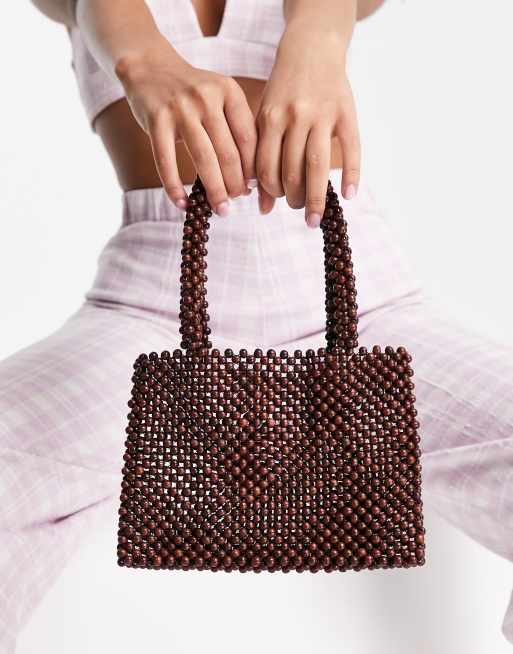 NA-KD - Brun taske med træperler