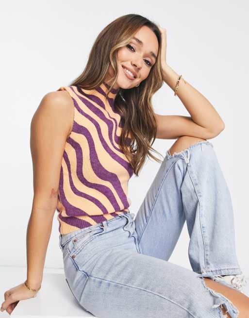 NA-KD - Højhalset top med hvirvelmønster i orange og lilla