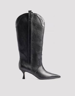 NA-KD - Knæhøje western-støvler med stilethæl i sort