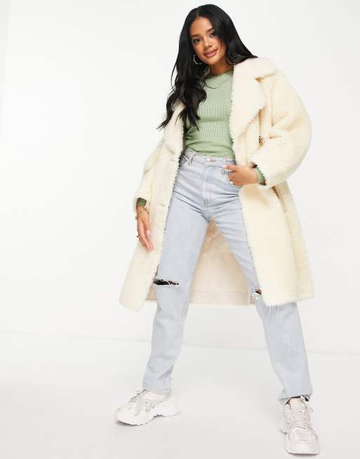 NA-KD - Oversized teddy-frakke i råhvid PU