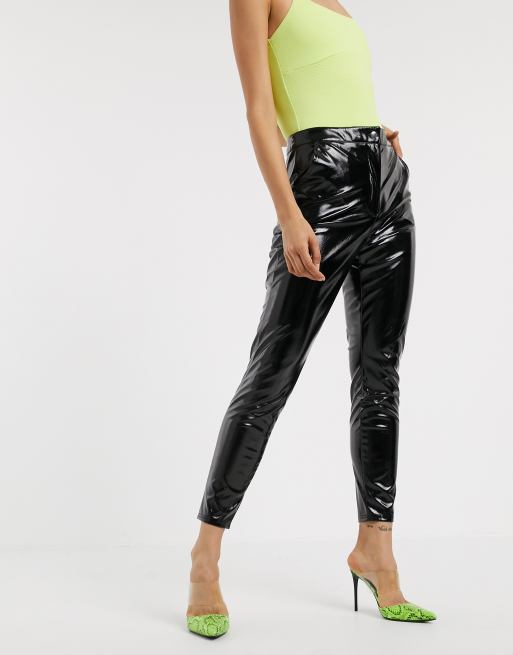 NA-KD - Sorte højtaljede skinny-bukser i vinyl