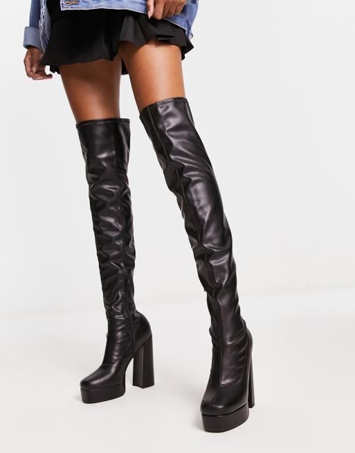 NA-KD - Sorte overknee-støvler med plateau-sål i 70'er-stil