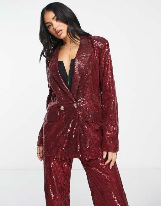 NaaNaa - Bordeaux oversized blazer med pailletter - Del af sæt