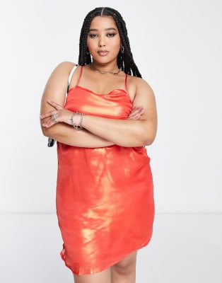 Native Youth Plus - Iriserende orange sæt med oversized skjorte og slip-minikjole