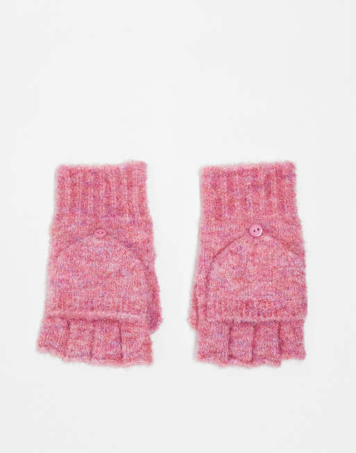 Native Youth - Lyserøde og strikkede handsker med foldedetalje