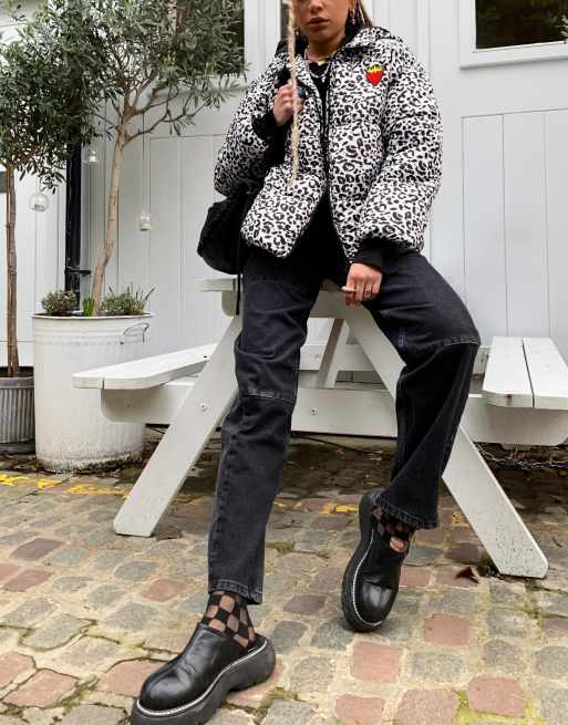 Native Youth - Oversized, foret jakke med hætte og broderet jordbær i leopardprint