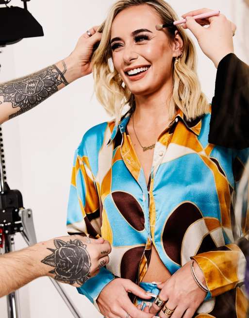 Neon Rose - Afslappet satinskjorte i 70'er-retroprint - Del af sæt