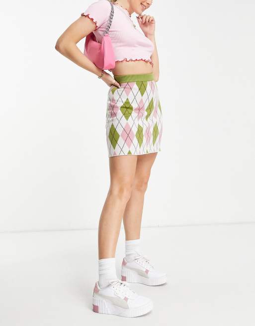 Neon Rose - Strikket mininederdel med argyle-tern - Del af sæt