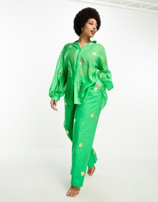 Never Fully Dressed Plus - Grønne bukser med vidde og metallisk muslingeprint - Del af sæt