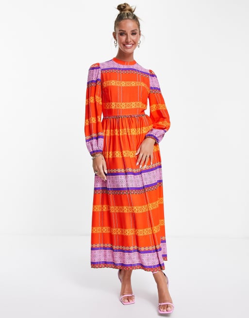 Never Fully Dressed - Casa - Stribet midaxi-kjole i rød og lyslilla med print