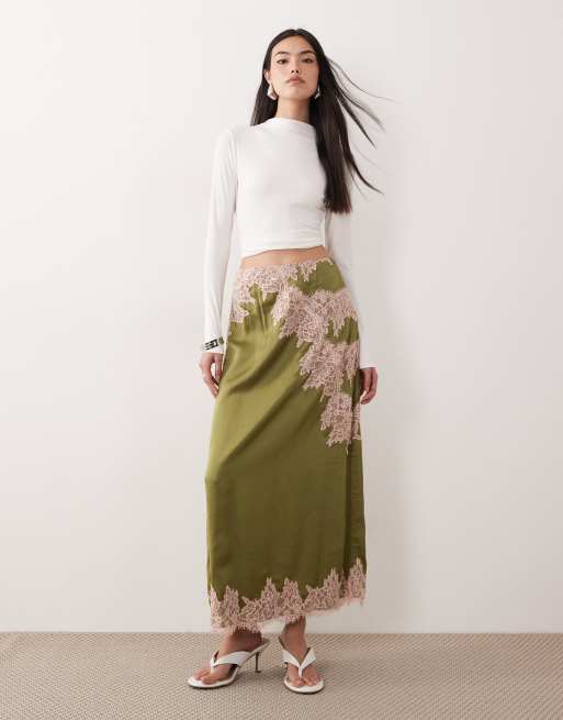 Never Fully Dressed - Grøn midaxinederdel i blonde