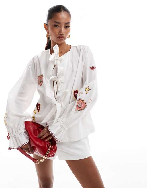 Never Fully Dressed - Hvid skjorte med hjertebroderi