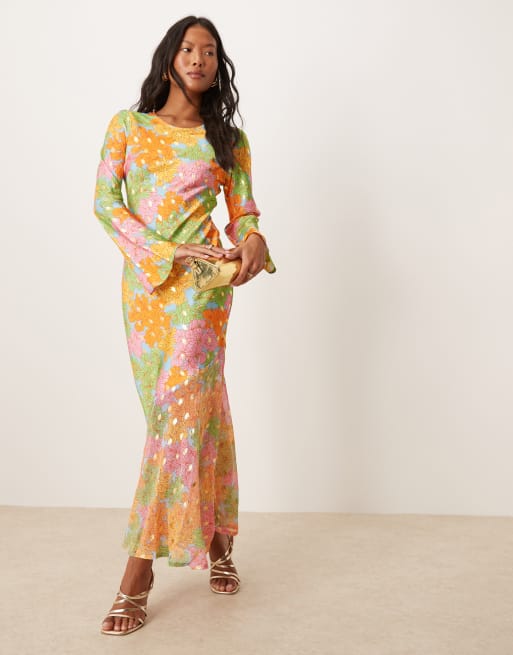 Never Fully Dressed Petite - Langærmet maxikjole med patchwork-print