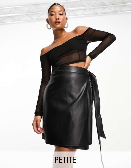 Never Fully Dressed Petite - Sort slå-om-mininederdel i PU