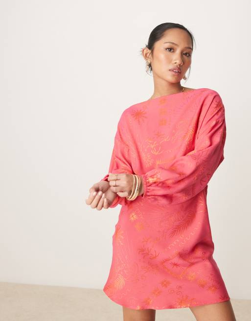 Never Fully Dressed Petite - Tilly - Rød og pink offshoulder-minikjole i plissé