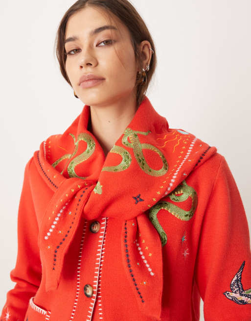 Never Fully Dressed - Rød strikket bandana med kosmiske broderier - Del af sæt
