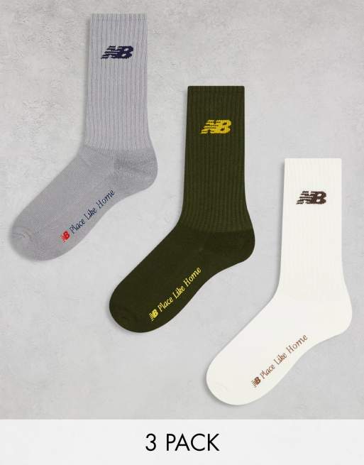 New Balance - NB Place Like Home - Pakke med 3 par sokker i hvid/grå/kakifarve