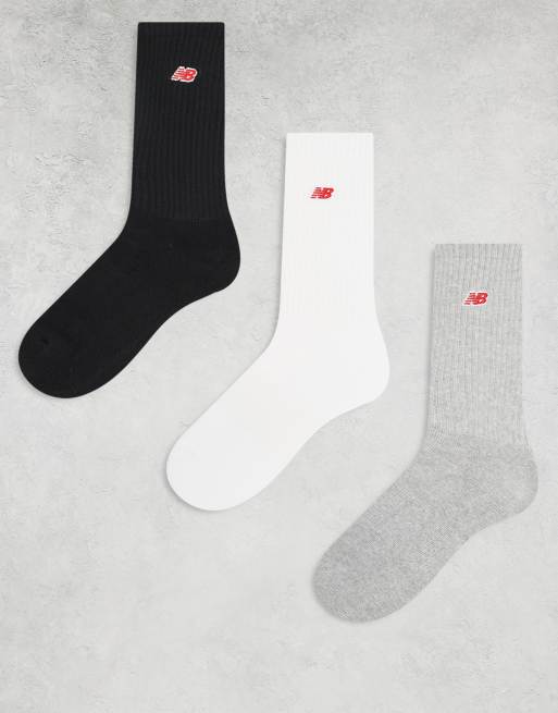 New Balance - Pakke med 3 par ribstrikkede sokker med rødt logo i forskellige farver