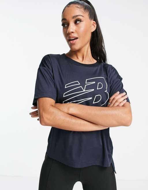 New Balance Running - Achiever - Sort t-shirt med stort logo i mesh