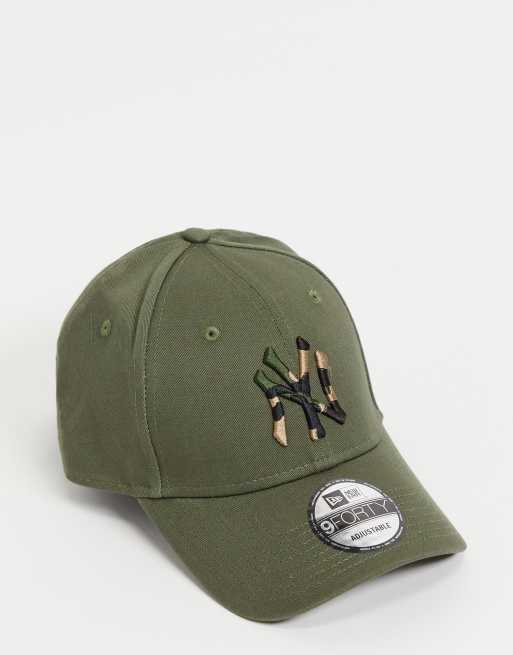 New Era - 9FORTY New York Yankees - Kakigrøn baseball-kasket med camouflage-farvet NY-logo