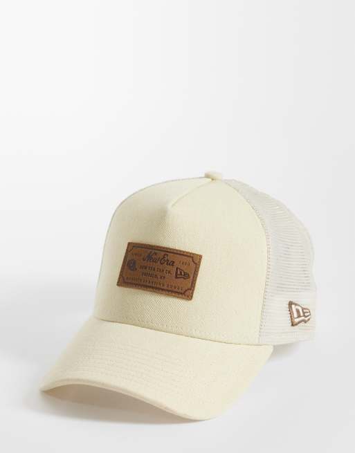 New Era - Blå trucker-kasket i denim med lædermærke