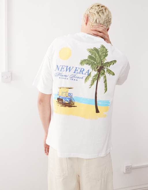 New Era - Hvid afslappet T-shirt med grafisk sommerprint på ryggen