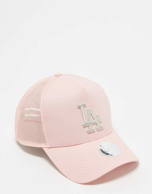 New Era - LA Dodgers - Lyserød trucker-kasket med metalfarvet logo