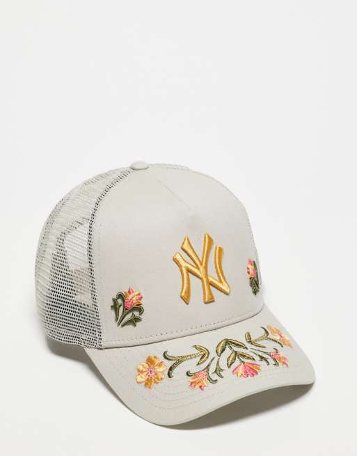 New Era - NY Yankees - Beige trucker-kasket med multifarvet blomstermotiv og ikonlogo