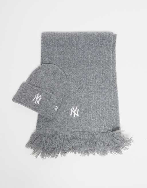 New Era - NY Yankees - Gråt strikket sæt med hue og halstørklæde