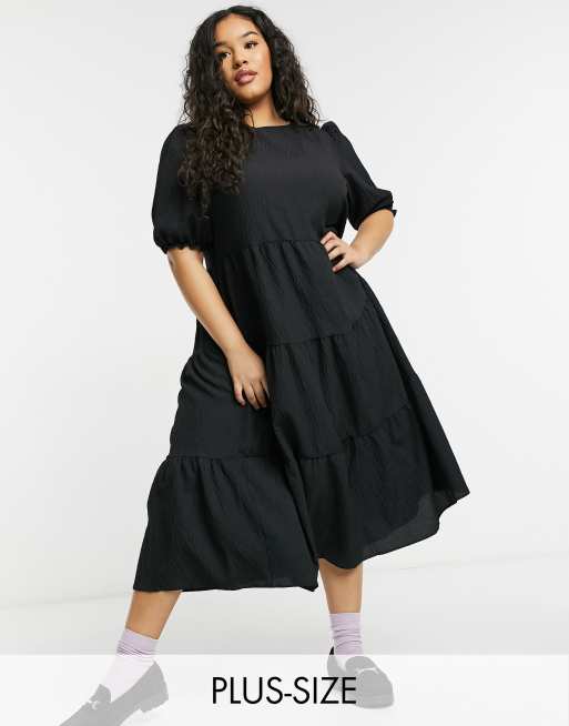 New Look Curve - Sort midikjole med pufærmer og tekstur