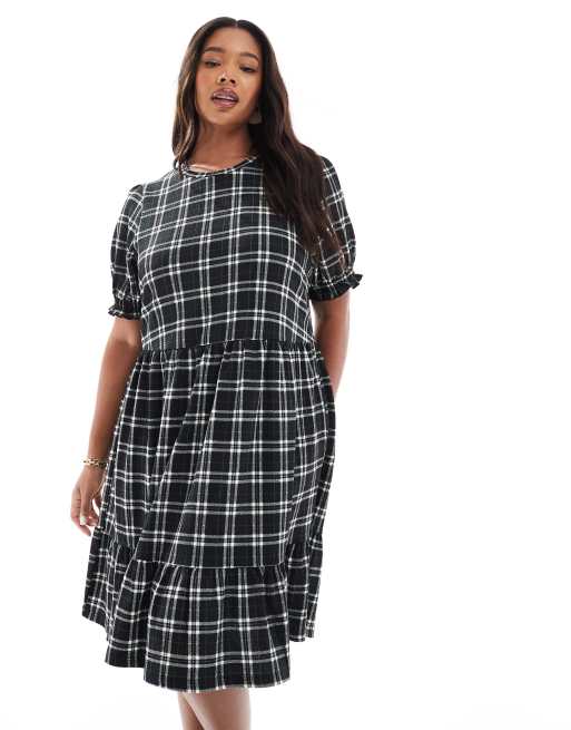 New Look Curve - Sort smock-minikjole med tern i krølstof