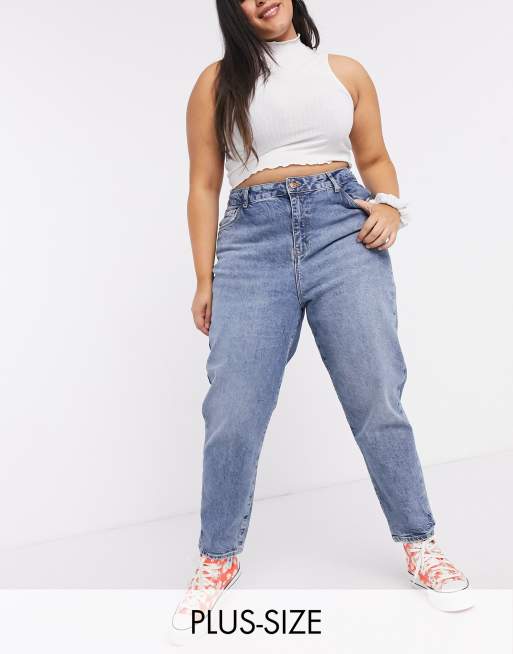 New Look Curve - Taljefremhævende mom-jeans i mellem blå
