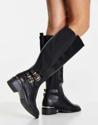 New Look Extra Wide Fit - Flade, knæhøje ridestøvler i sort