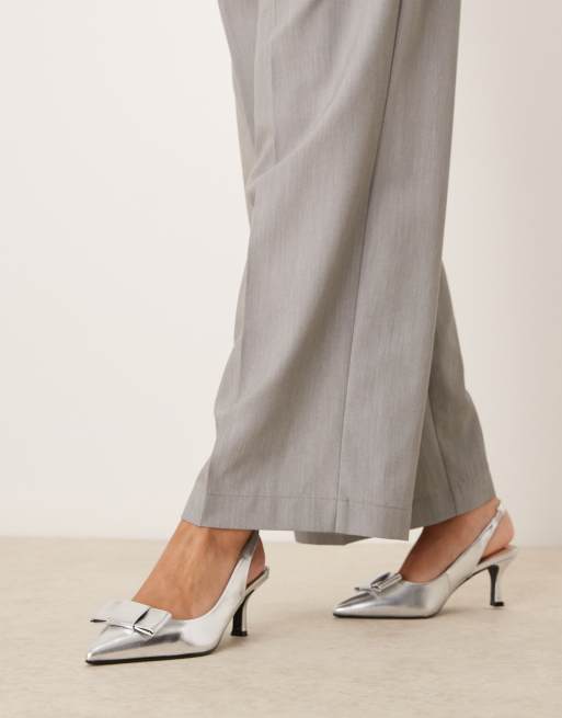 New Look Wide Fit - Sølvfarvede sko med hæl, slingback-rem og sløjfe