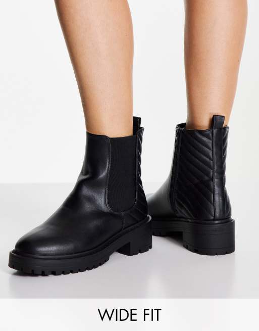 New Look Wide Fit - Sorte flade ankelstøvler med vatterede detaljer