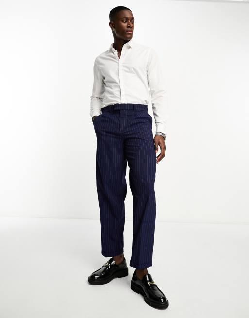New Look - Afslappede og elegante marineblå bukser med plisseringer