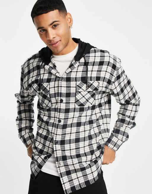 New Look - Afslappet ternet skjorte i hvid med hætte