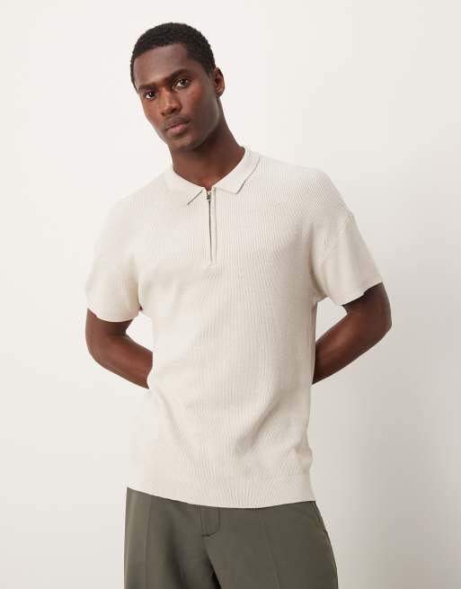 New Look - Beige og kortærmet poloskjorte med 1/4-lynlås