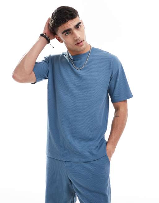 New Look - Blå og oversized T-shirt med vaffeltekstur - Del af sæt