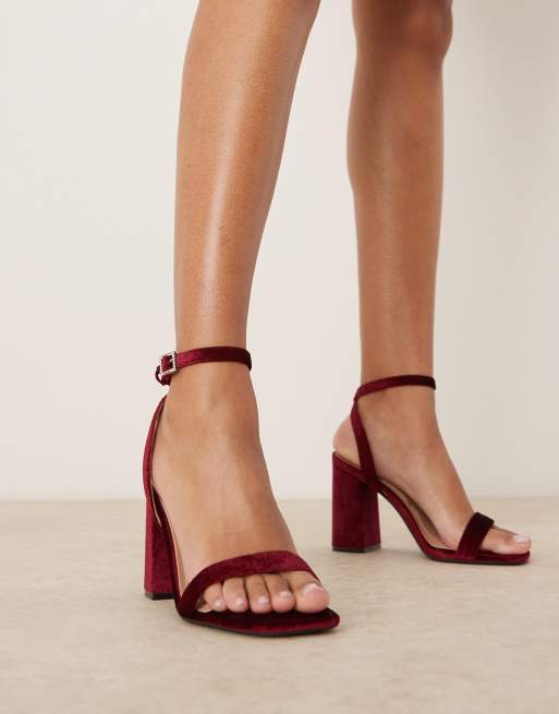 New Look - Bordeauxrøde sandaler i velour med blokhæl