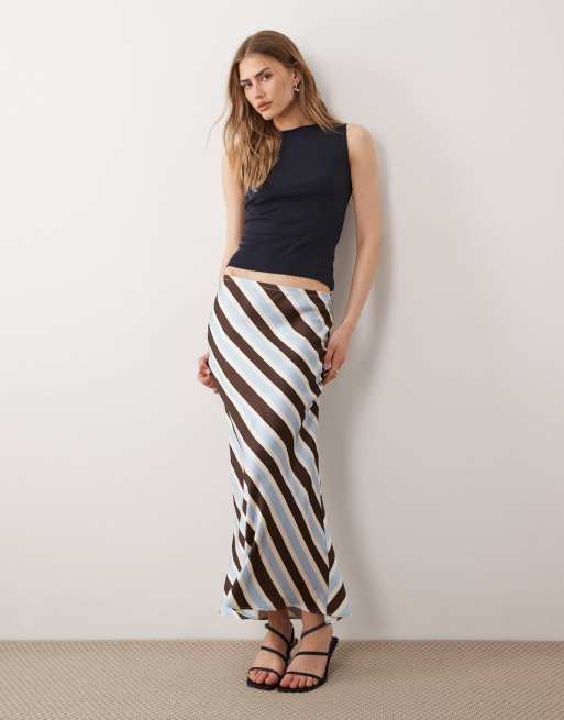 New Look - Brun midinederdel med striber i skråtskåret satin