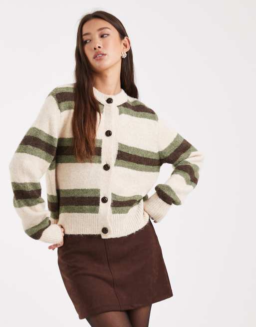 New Look - Cardigan med kakigrønne/cremehvide striber