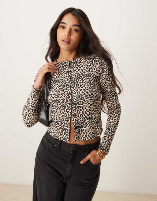 New Look - Cardigan med rund hals og leopardprint