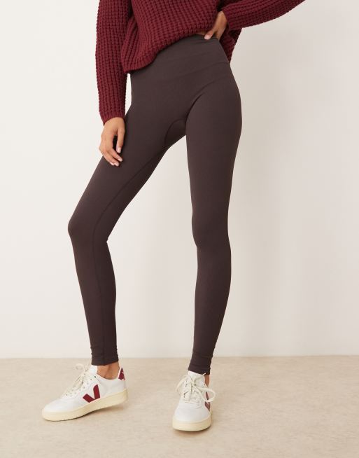 New Look - Chokoladebrune leggings i sømløs ribstrik
