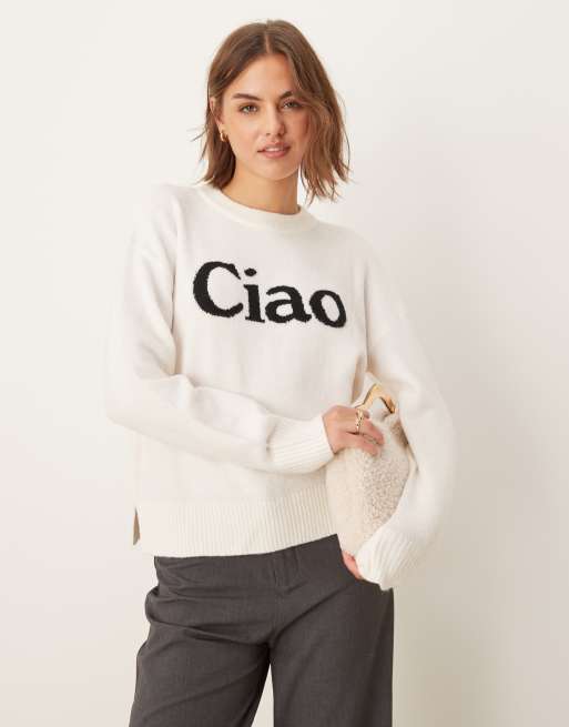 New Look - Ciao - Cremefarvet trøje med logo