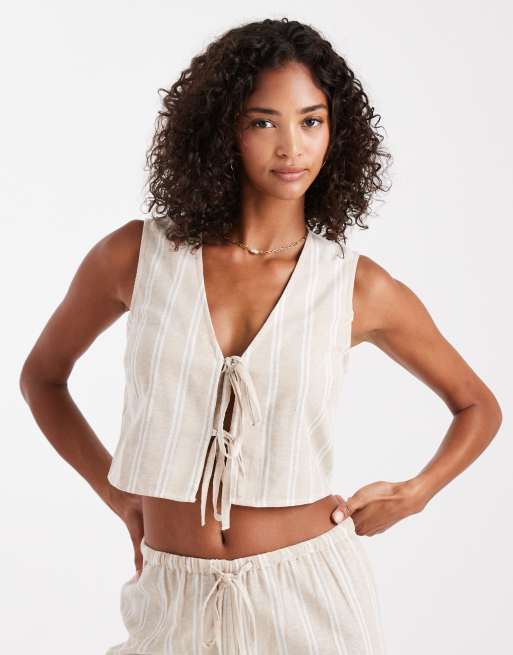 New Look - Cremefarvet vest med striber og bindebånd foran
