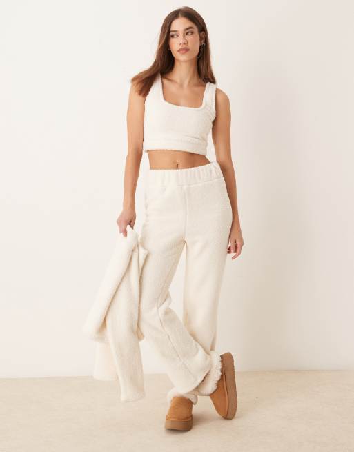 New Look - Cremehvide joggingbukser med vidde i imiteret lammeskind - Del af sæt